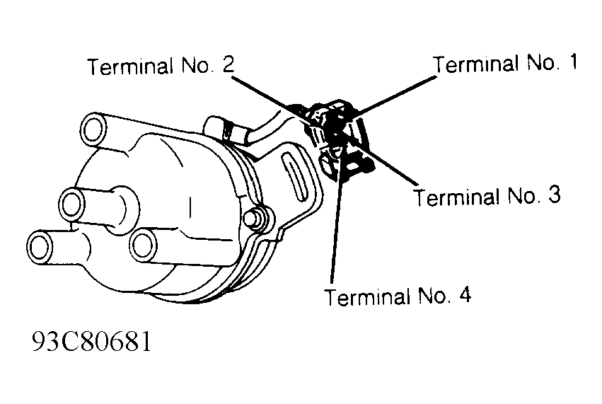 1. Crank angle sensor is located inside of distributor. Disconnect distributor connector. Set voltmeter low volt AC scale. Connect voltmeter between terminals No. 1 and 2 of distributor connector. See Fig 1 . Crank engine and ensure voltage fluctuates with engine RPM. If voltage fluctuates, go to next step. If voltage does not fluctuate, replace crank angle sensor.