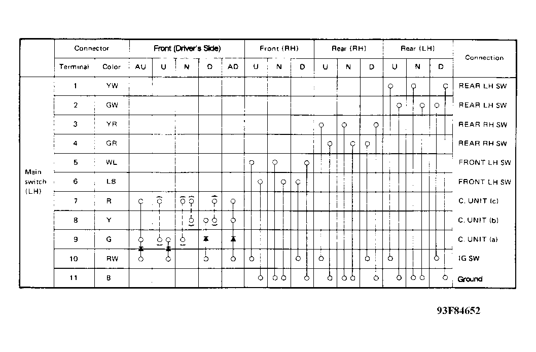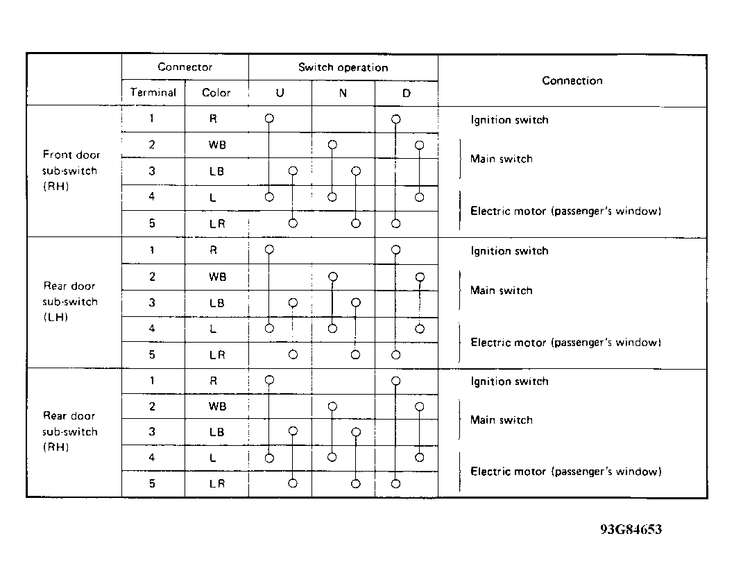 Fig 3: Power Window Sub-Switch Connector Terminals