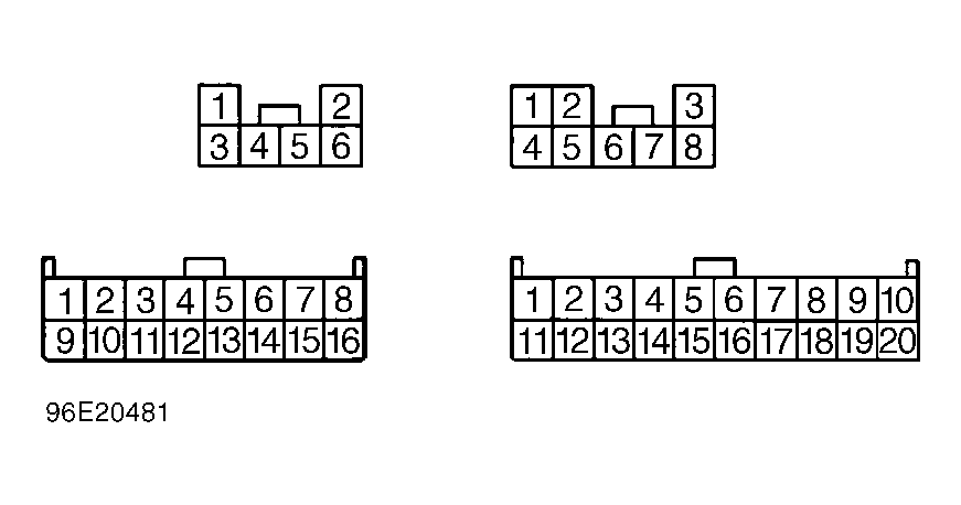 - Turn ignition off. Disconnect ABS/TCS control unit connectors. Measure resistance between ground and terminal No. 6 at ABS/TCS control unit 6-pin harness connector. Measure resistance between ground and terminal No. 5 at ABS/TCS control unit 8-pin harness connector.