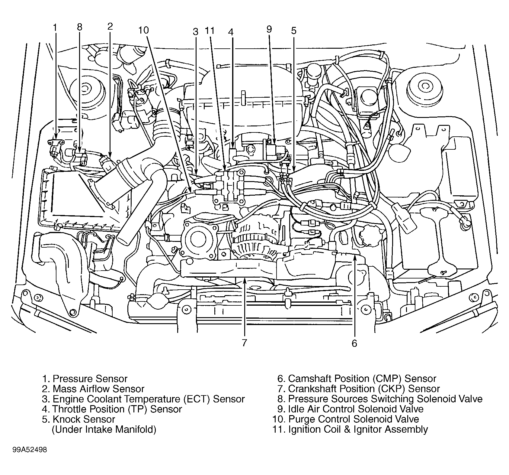 Fig 3: Component Locations (Legacy 2.5L & Outback 2.5L)