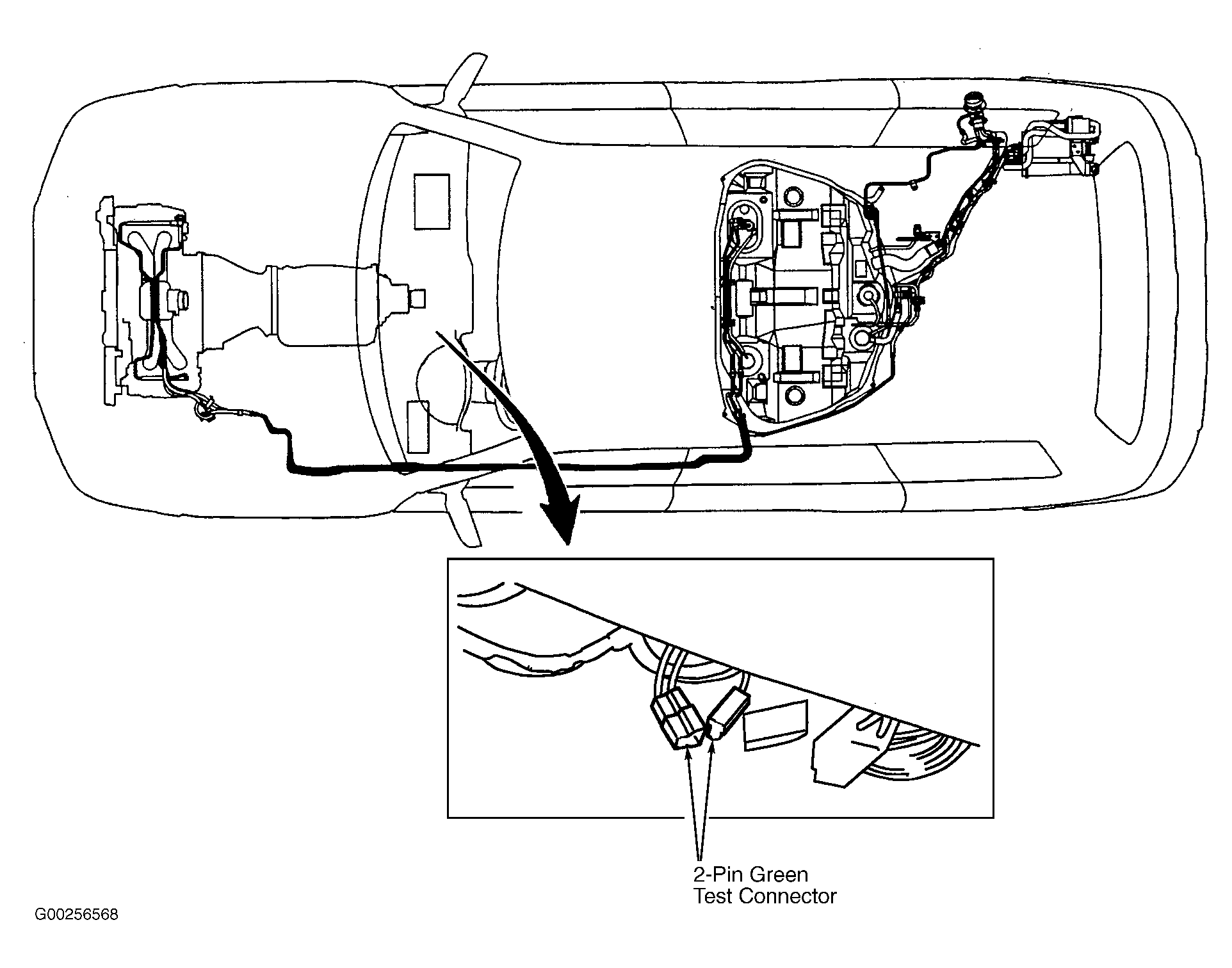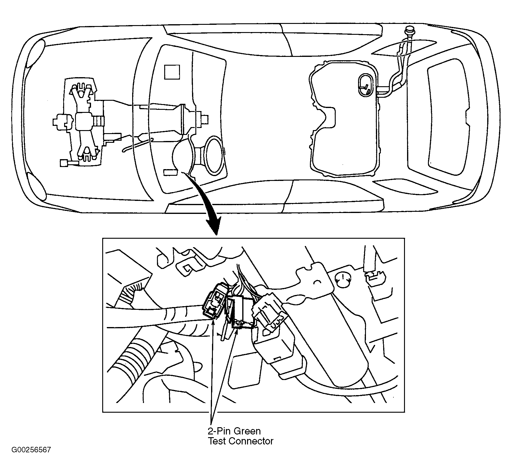 - Turn ignition off. Connect 2-pin Green test connector located under left side of instrument panel (near center of instrument panel on Legacy and Outback). See Figure, Figure and Figure . Turn ignition on. Using a scan tool, activate drain valve. If drain valve operates, contact authorized Subaru dealership because probable cause is deterioration of multiple parts. If drain valve does not operate, replace drain valve. Clear memory. See CLEARING DIAGNOSTIC TROUBLE CODES . On Forester, Legacy and Outback models, validate repair by performing appropriate drive cycle. See DRIVE CYCLES . On Impreza and Outback Sport, perform verification procedure. See VERIFICATION PROCEDURE .
