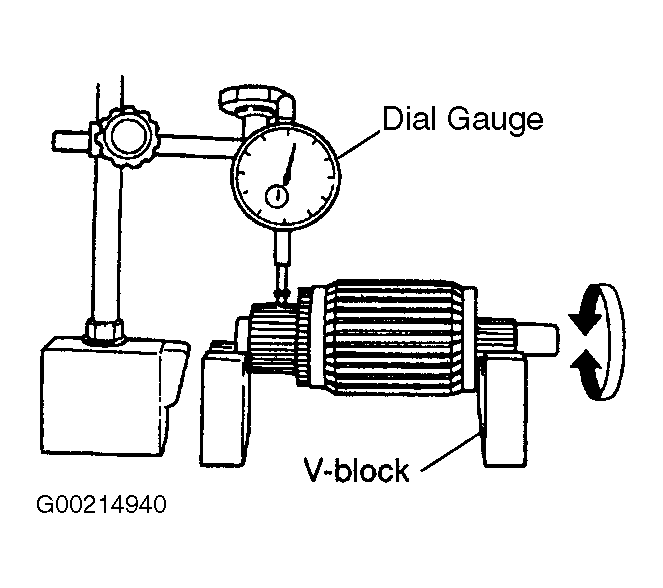 - Check the commutator run-out and replace if it exceeds the limit. See Fig 1