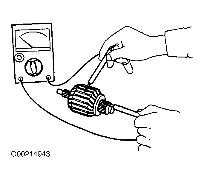 . Hold a iron sheet against armature core while slowly rotating armature. A short-circuited armature will cause the iron sheet to vibrate and to be attracted to core. If the iron sheet is attracted or vibrates, the armature, which is short-circuited, must be replaced or repaired.