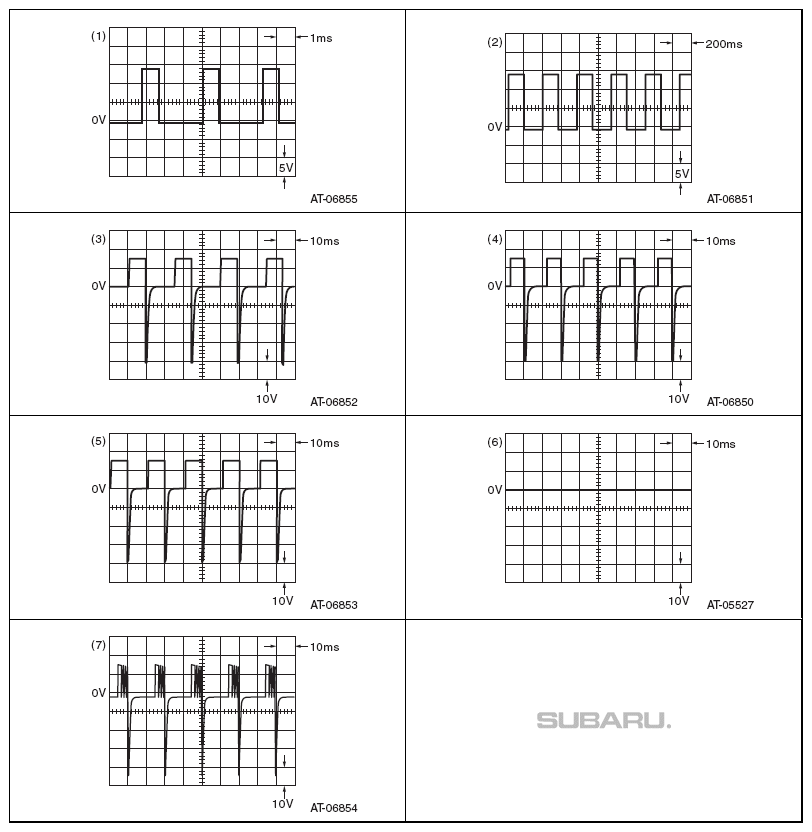 | Engine ON, "D" range, brake ON | Refer to Figure the waveform (solenoid (7)) | |||||
