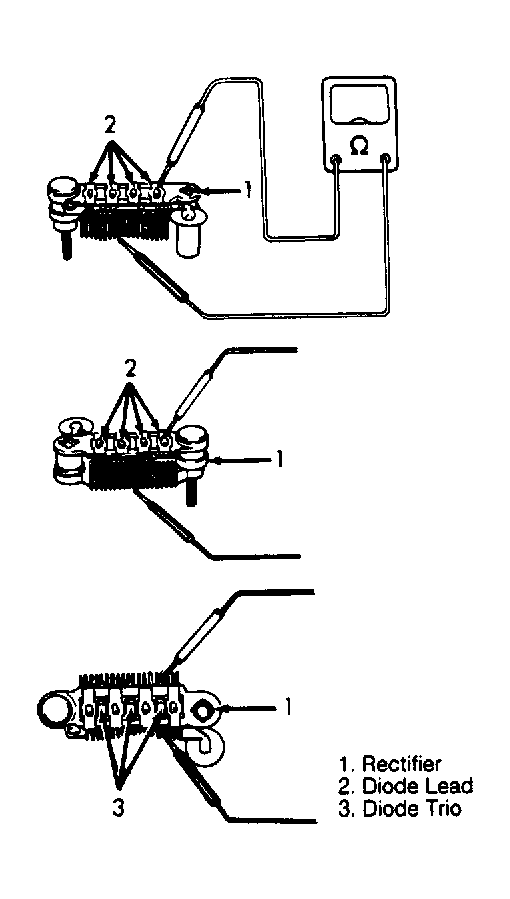 - Using an ohmmeter, check for continuity between ground and "B" terminal. Connect one lead of ohmmeter to "B" terminal and other to ground. Swap leads and recheck for continuity. See Fig 1 or Figure