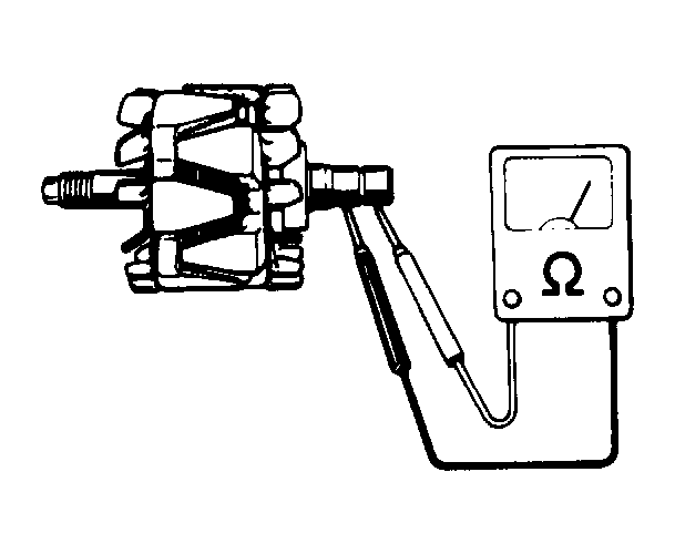 2. Check rotor for shorts to ground by connecting ohmmeter between slip ring and rotor shaft. Ohmmeter should show no continuity. Check slip rings for wear or pitting. Turn rotor on lathe (if necessary). Check bearing and replace (if necessary).