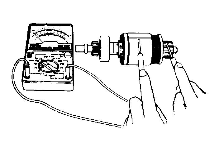 Check for continuity between commutator and armature coil core. See Figure. If continuity does not exist, armature is good. Proceed to OPEN CIRCUIT TEST . If continuity exists, armature is grounded and must be replaced.
