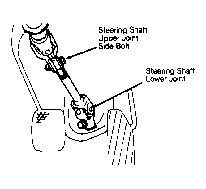 - Pull back floor mat at bottom of steering shaft and remove lower steering column cover. Remove steering shaft joint upper side bolt. See Fig 1