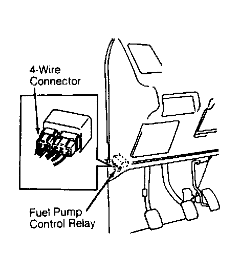 - Place transmission in Neutral or Park and set parking brake. Disconnect 4-wire connector from fuel pump control relay located under left side of dash, left of ECM. See Fig 1