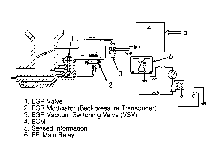 - If EGR valve and EGR modulator are okay, check EGR Vacuum Switching Valve (VSV). See EGR VACUUM SWITCHING VALVE (VSV).