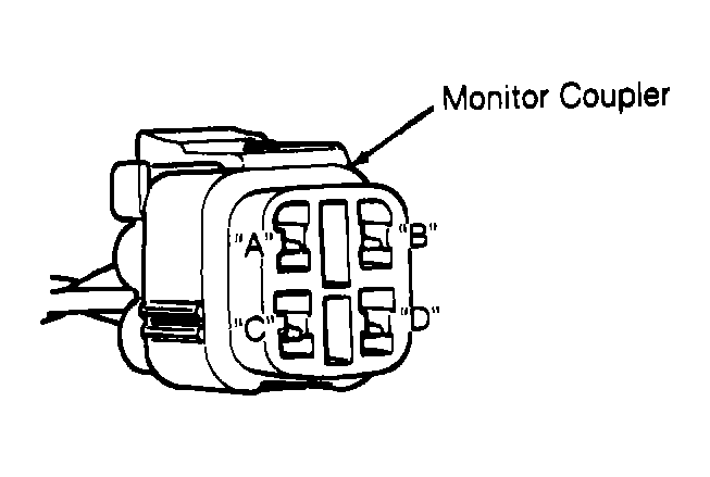 - Remove protective cap from monitor coupler located next to battery. Connect jumper wire between terminals "C" (ground) and "D" (test switch). See Fig 1
