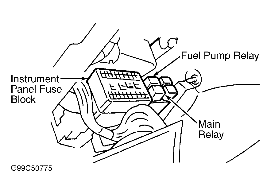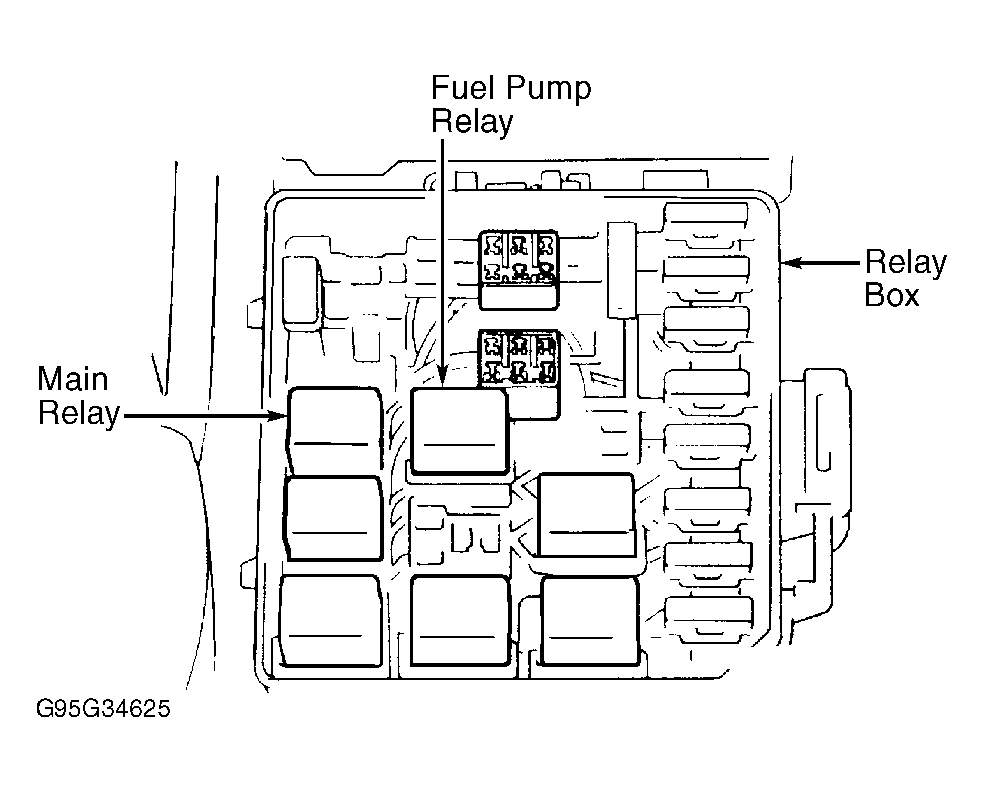 Both fuel pump- and main relays are identical. Following test procedures apply to both.
