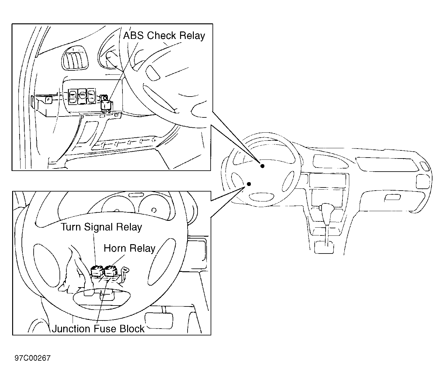 Junction Fuse Block Behind dash, left of steering column. See Figure .