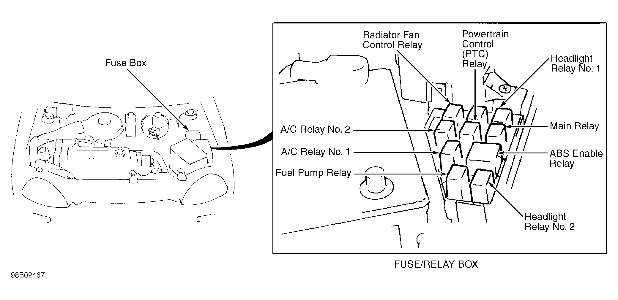 Fuse Box On left front inner fender panel, behind fuse/relay box. See Figure .