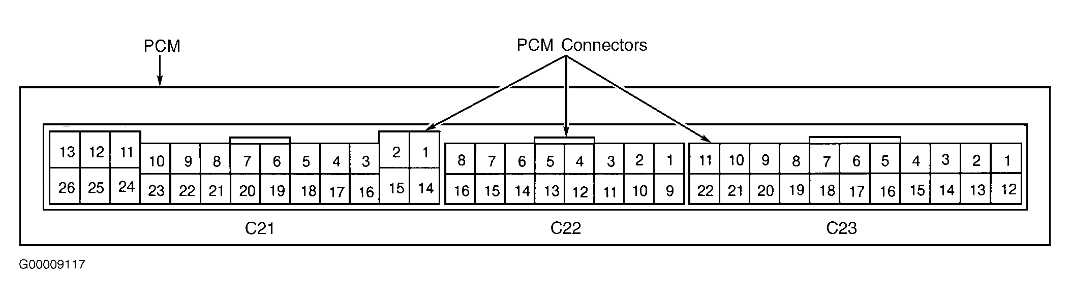 2. Check for DTCs. See RETRIEVING DIAGNOSTIC TROUBLE CODES  under SELF-DIAGNOSTIC SYSTEM. If DTC P0107, P0122 and P0450 are set, check for an open in Light/Green wire between PCM 16-pin connector C22 terminal No. 1 and MAP sensor connector terminal No. 3. See Figure. See WIRING DIAGRAMS article. Repair as necessary and go to DTC CONFIRMATION TEST . If DTC P0107, P0122 and P0450 are not set and/or Light/Green wire is okay, go to next step.