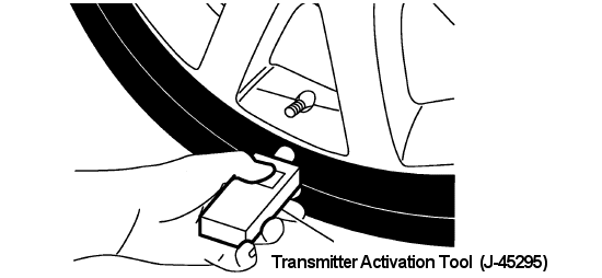- With the transmitter activation tool pushed against the Front Left transmitter, press the button for 5 seconds. See Figure. The hazard warning light flash twice as each tramsmitter is woken-up.