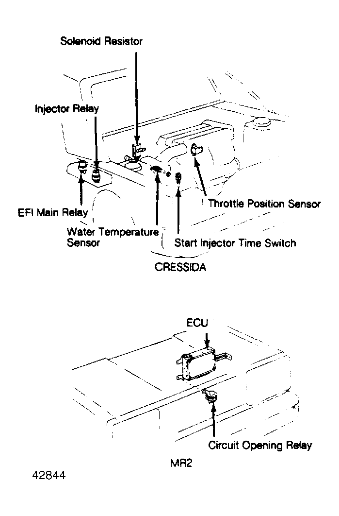 The TCCS consists of the following subsystems: Electronic Fuel Injection (EFI) system, Data Sensors, Electronic Control Unit (ECU), Electronic Spark Advance (ESA) system, Idle Speed Control (ISC) system, EGR Control, Electronic Controlled Transmission (ECT), Diagnostic System and catalytic converter. See Figure.