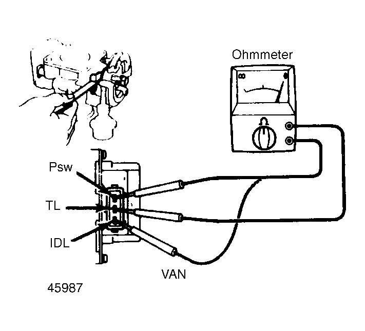 | Throttle Clearance | Terminals | Ohmmeter Reading |