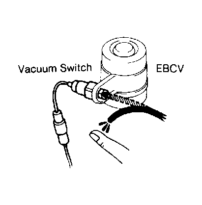 2. Reconnect EBCV connector and ensure engine speed drops about 300 RPM. Disconnect and plug vacuum hose from vacuum switch. Ensure engine speed returns to 2000 RPM after a few seconds. Reconnect vacuum hose and connectors. If no problem is found, system is okay.