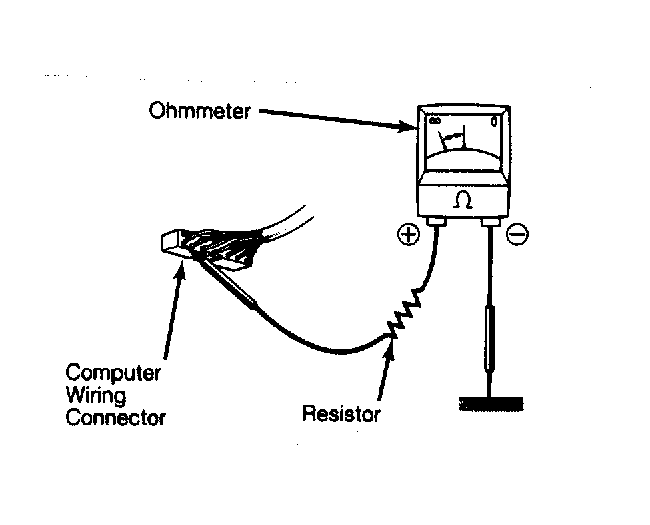 1. Block vehicle and raise 1 rear wheel off the ground. Release parking brake and place transmission in Neutral. Disconnect wiring connector from computer, located at left kick panel.