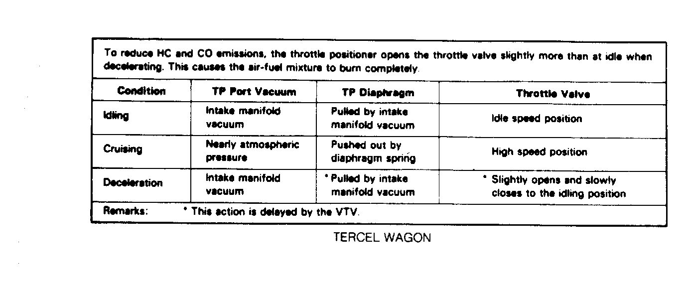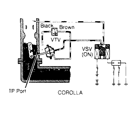 - Reconnect vacuum hose to TP. Check that engine returns to idle speed within 2-6 seconds. Reconnect TVSV "M" port vacuum hose. If no problem exists, system is okay.