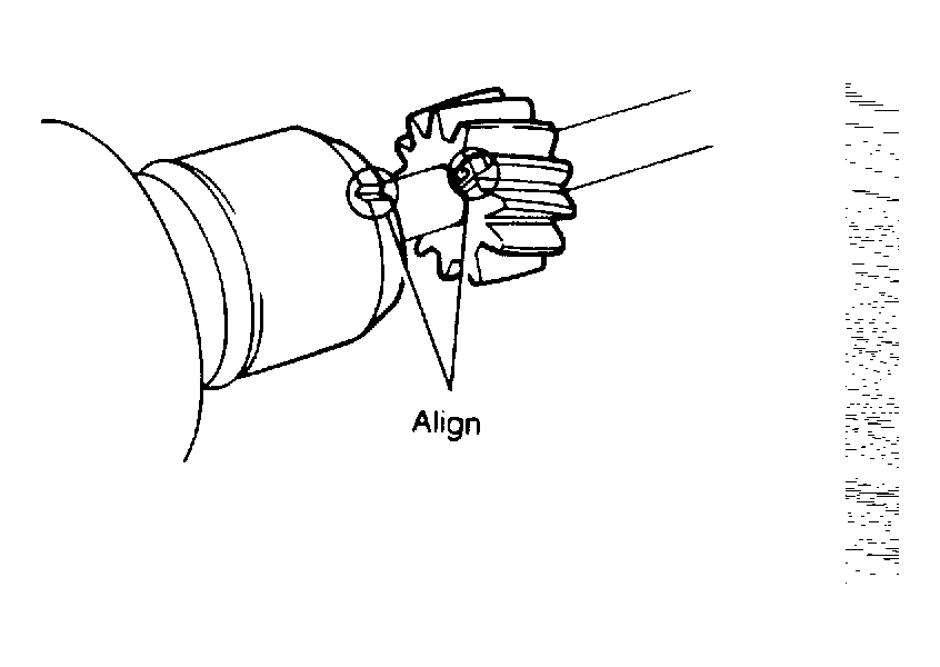 Install new "O" ring into housing. Coat "O" ring with oil. Align groove on distributor housing with protrusion on top of drive gear teeth. See Fig 1. Insert distributor, aligning center of distributor flange with bolt hole on head. Install spark plug wires and set timing. Tighten hold-down bolt.