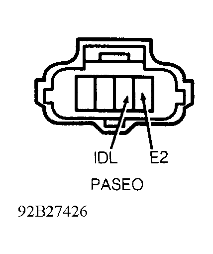 - Disconnect electrical connector from throttle position sensor. Install jumper wire between IDL and E2 terminals on wiring harness side. See Fig 1.
