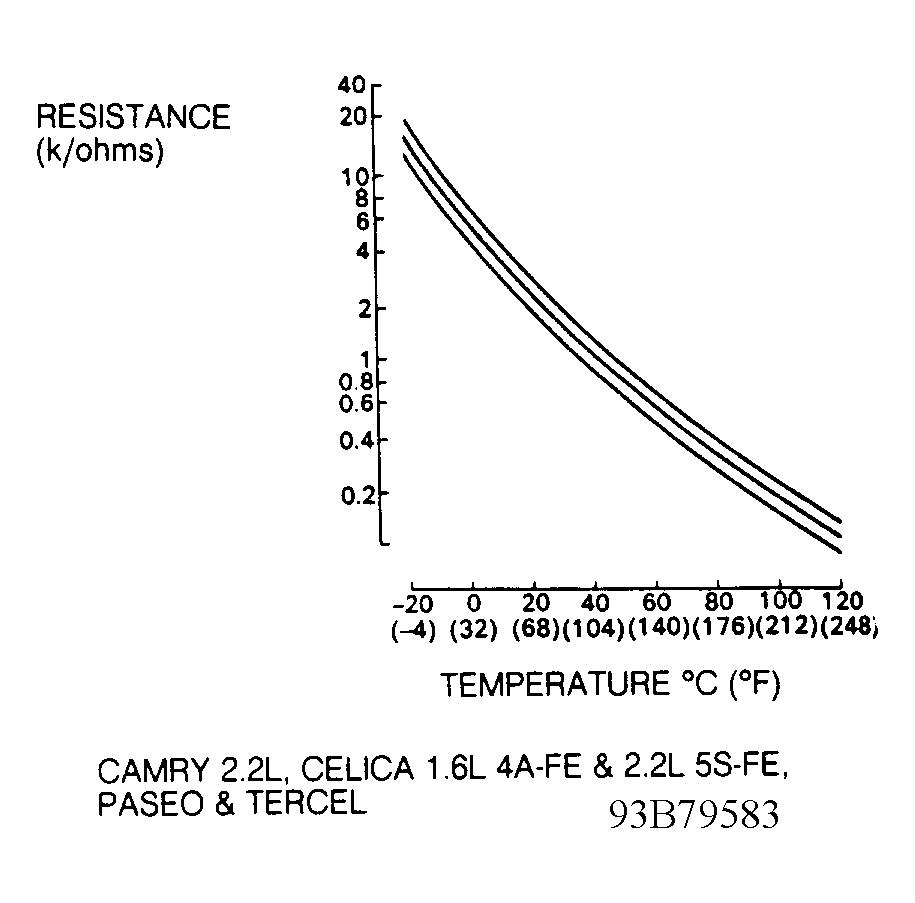 Air temperature sensor is located in air intake, near air filter. Measure resistance between sensor terminals. For resistance specifications, see Fig 1.