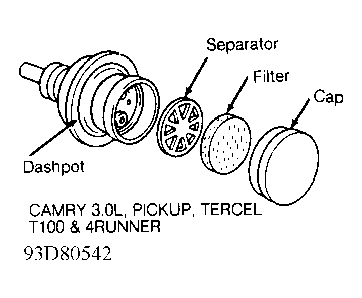 Home >> Toyota >> 1993 >> Tercel Base >> Repair and Diagnosis (Single Page) >> Engine Performance >> System >> Engine Controls - System/Component Tests >> Emission Systems & Sub-Systems >> Throttle Controls >> Dashpot Control System