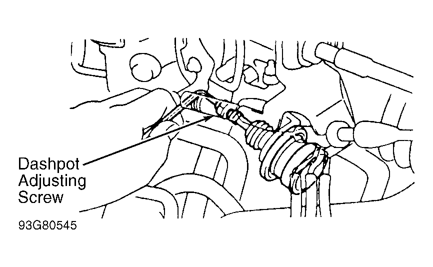 3. Release throttle. Dashpot should be extended and dashpot setting RPM should be as specified. See DASHPOT TESTING SPECIFICATIONS  table.