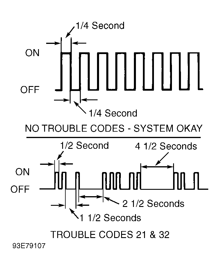 8. If trouble code exists, digits of trouble code will be flashed at approximately 1/2-second intervals. A 1 1/2-second pause separates first and second digits of code. See Figure.