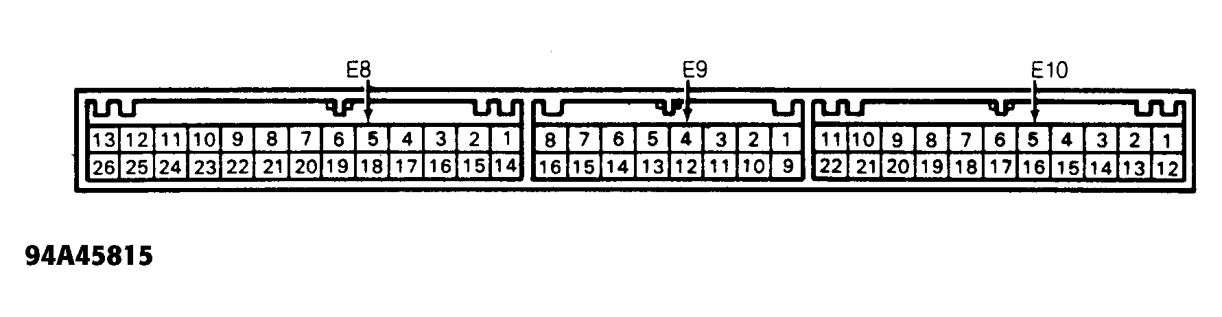 NOTE: Figs. Fig 1, Fig 2 and Fig 3 identify ECM terminals on vehicles which are used for performing tests on various components in this article. For ECM terminal identification on remaining models, see PIN VOLTAGE CHARTS article.