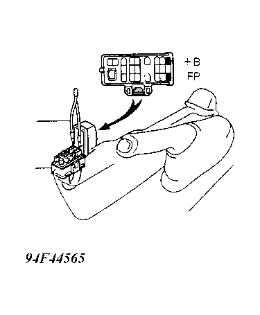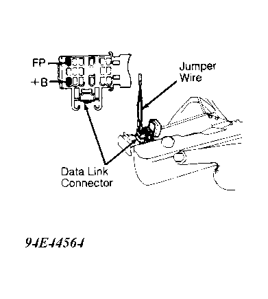4. Install jumper wire between +B and FP terminals of data link connector. See Figure and Figure. Data link connector is located below driver's seat.