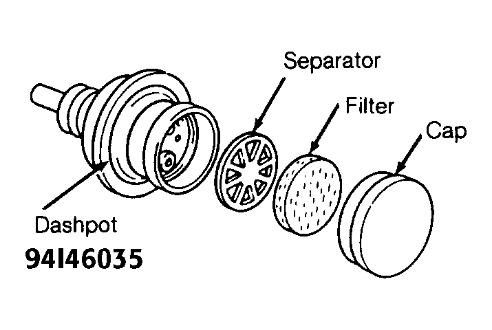 - Install separator, filter and cap. Install filter with the coarse surface facing outward (away from dashpot).