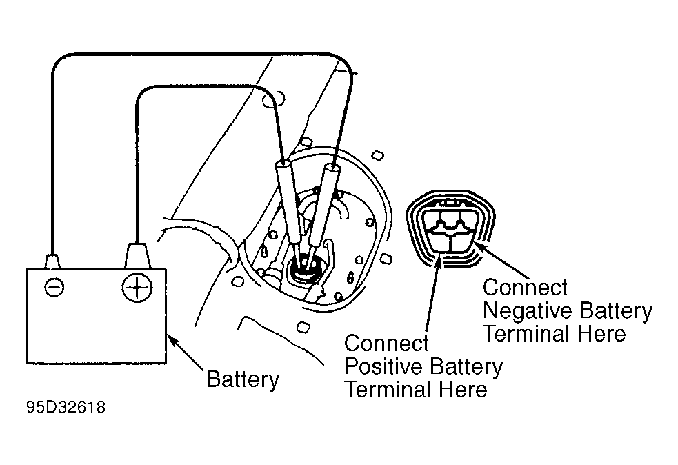 - Using scan tester manufacturer's instructions, activate fuel pump and note fuel pressure. Fuel pressure should be within specification. See FUEL PUMP PERFORMANCE table.NOTE: Fuel pump may also be activated by connecting battery voltage to specified terminals on fuel pump. See Figure.