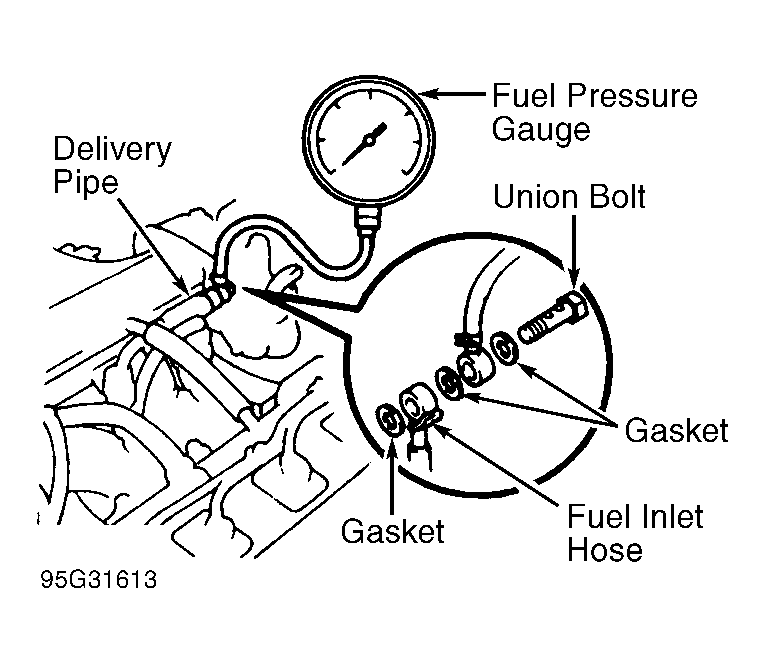 - Disconnect negative battery cable. Remove fuel pressure gauge. Reinstall union bolt using NEW gaskets. Tighten union bolt. Install negative battery cable. Recheck for fuel leaks.