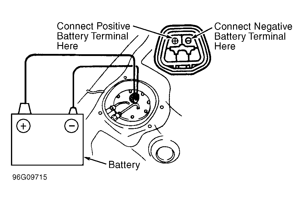 - Using scan tester manufacturer's instructions, activate fuel pump and note fuel pressure. Fuel pressure should be within specification. See FUEL PUMP PERFORMANCE table.NOTE: Fuel pump may also be activated by connecting battery voltage to specified terminals on fuel pump. See Figure.