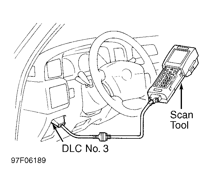 1. Connect Toyota or OBD-II scan tool. See Figure. Record any DTCs and freeze frame data. Switch scan tool to CHECK mode (Toyota scan tool only). Drive vehicle several times with engine speed, load and its surrounding range shown with ENGINE SPD, CALC LOAD in freeze frame data or MISFIRE RPM and MISFIRE LOAD in scan tool data list.