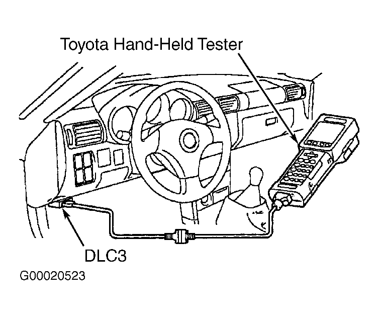 1. Connect scan tool to Data Link Connector No. 3 (DLC3). See Figure. Insert registered master key in ignition lock cylinder.