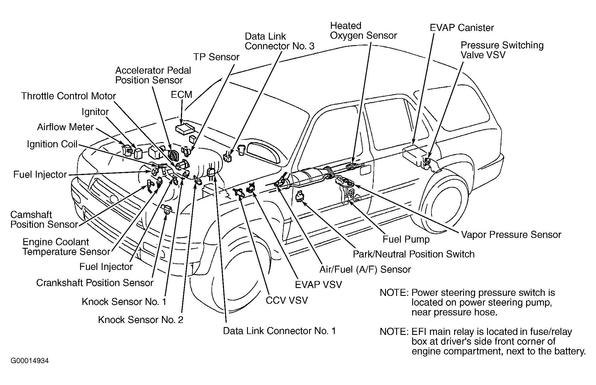 Fig 15: Locating Engine Control System Components (Sienna)