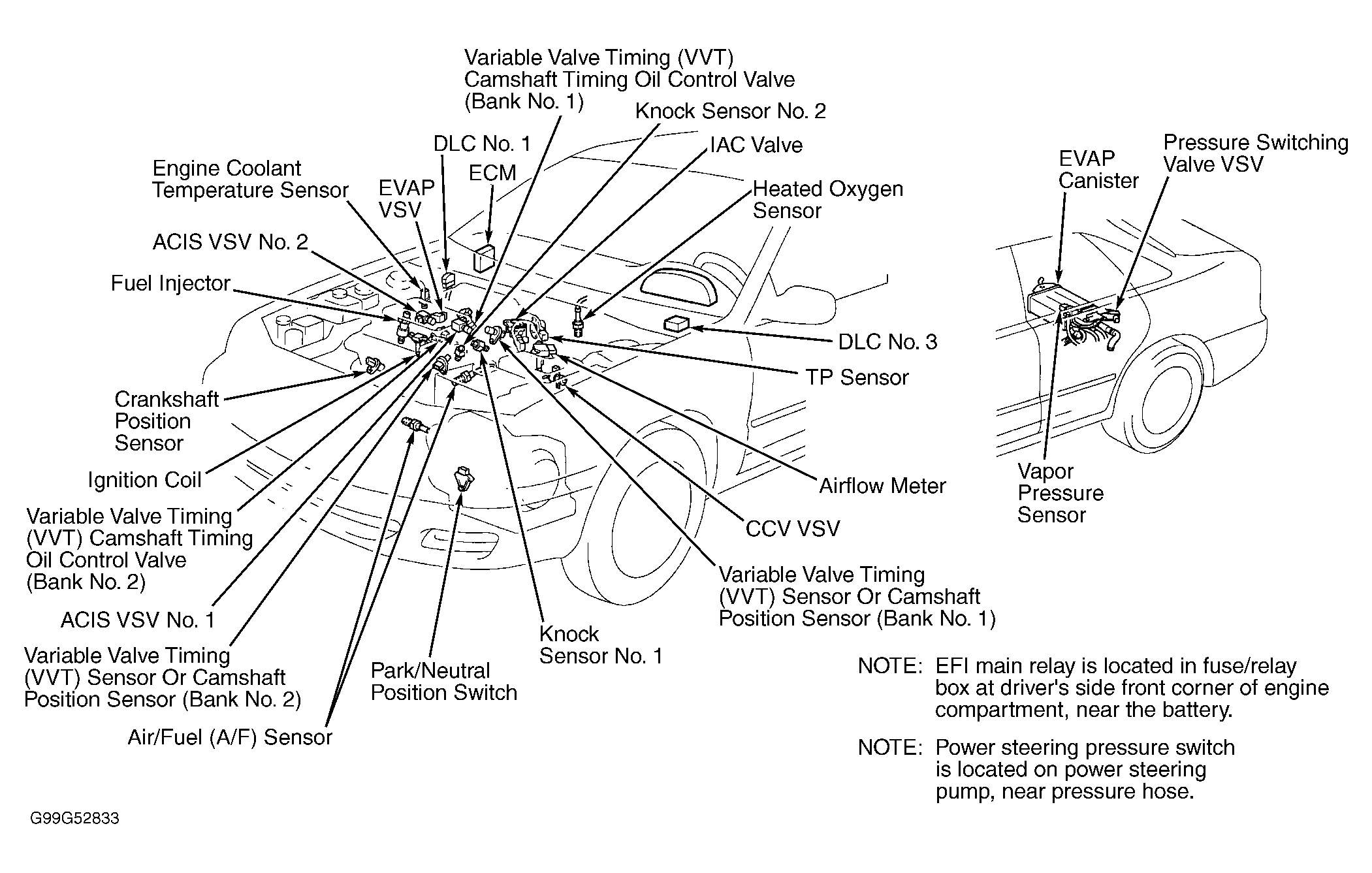 Fig 11: Locating Engine Control System Components (MR2)