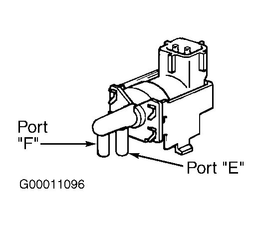 - Disconnect EVAP VSV vacuum hoses. Turn ignition on. Access ECM below stereo, behind instrument panel, just in front of center console. On models with 4A/T transmission, connect a jumper wire by backprobing between ground and terminal No. 4 (Blue/Black wire) at ECM harness connector E8. See Figure. On models without 4A/T transmission, connect a jumper wire by backprobing between ground and terminal No. 7 (Blue/Black wire) at ECM harness connector E4. See Figure. On all models, with jumper wire connected air applied to EVAP VSV port "E" should flow from port "F". See Fig 1. Remove jumper wire. With jumper wire removed, air applied to EVAP VSV port "E" should not flow from port "F". If EVAP VSV functions as specified, go to step 16. If EVAP VSV does not function as specified, go to next step.
