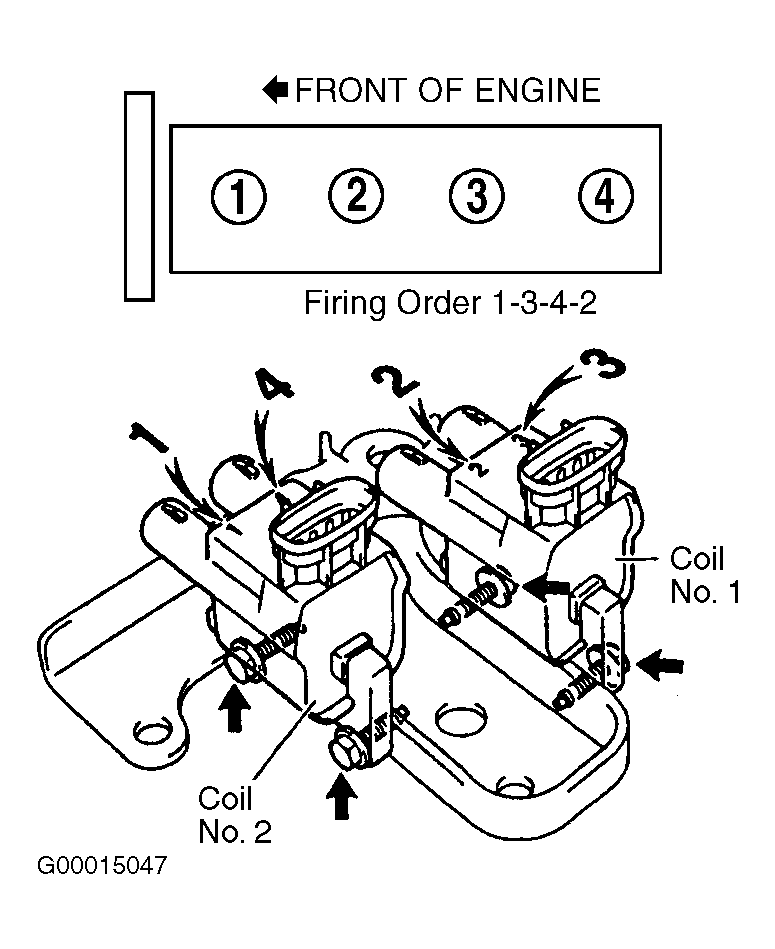 (3) System uses a Distributorless Ignition System (DIS) with 2 ignition coils. Cylinders No. 1 and 4 use the same ignition coil. Cylinders No. 2 and 3 use the same ignition coil. See Figure