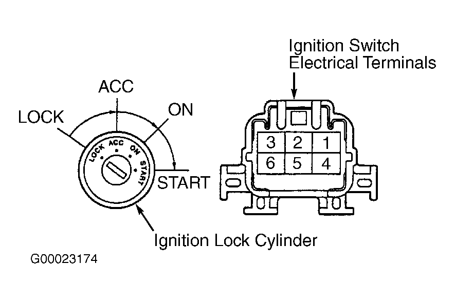 Using ohmmeter, check that continuity is as specified between indicated ignition switch electrical terminals in relation to ignition lock cylinder position. See IGNITION SWITCH CONTINUITY table. Replace ignition switch if defective. See IGNITION SWITCH under REMOVAL & INSTALLATION.IGNITION SWITCH CONTINUITY