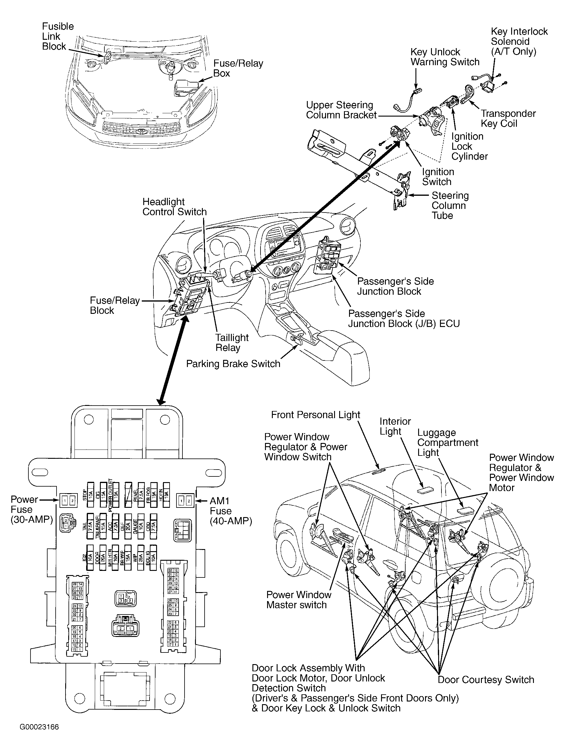 - Check wiring harness and electrical connectors between power door lock control switch and passenger's side J/B ECU. See WIRING DIAGRAMS in POWER DOOR LOCKS - TRUCKS (EXCEPT SEQUOIA) article. Power door lock control switch may also be referred to as door lock control switch. If wiring harness and electrical connectors are okay, go to next step. If wiring harness or electrical connector are defective, repair as necessary and recheck operation of key confinement prevention function.