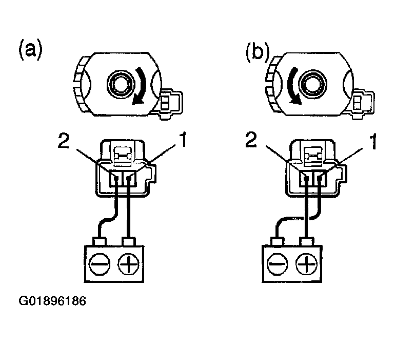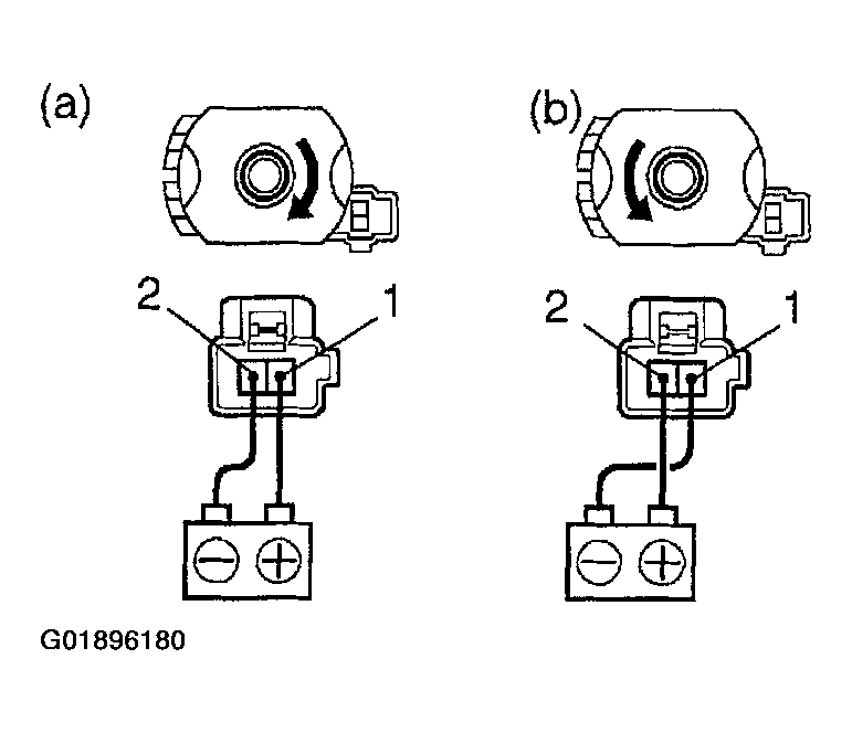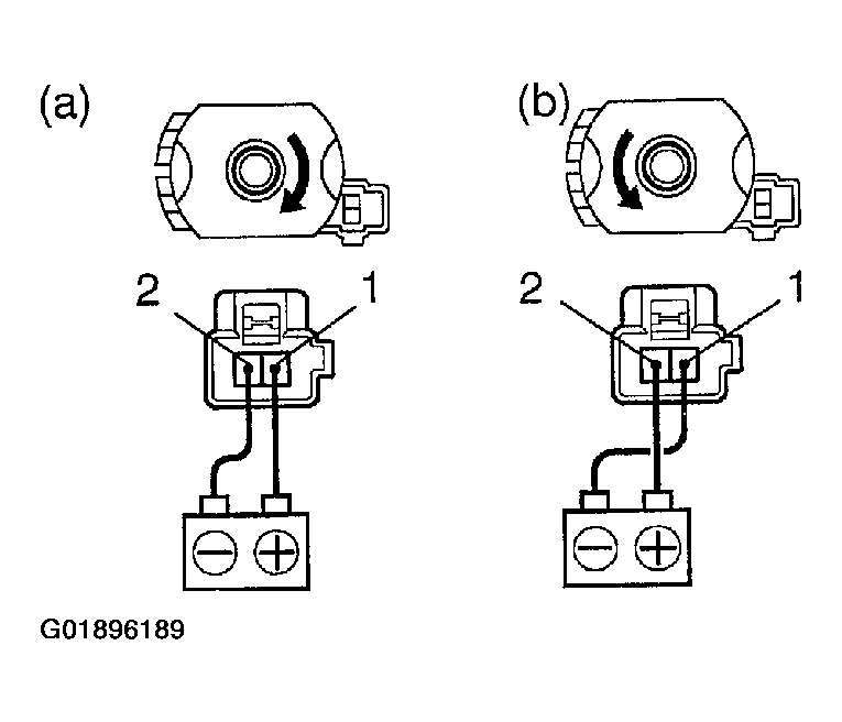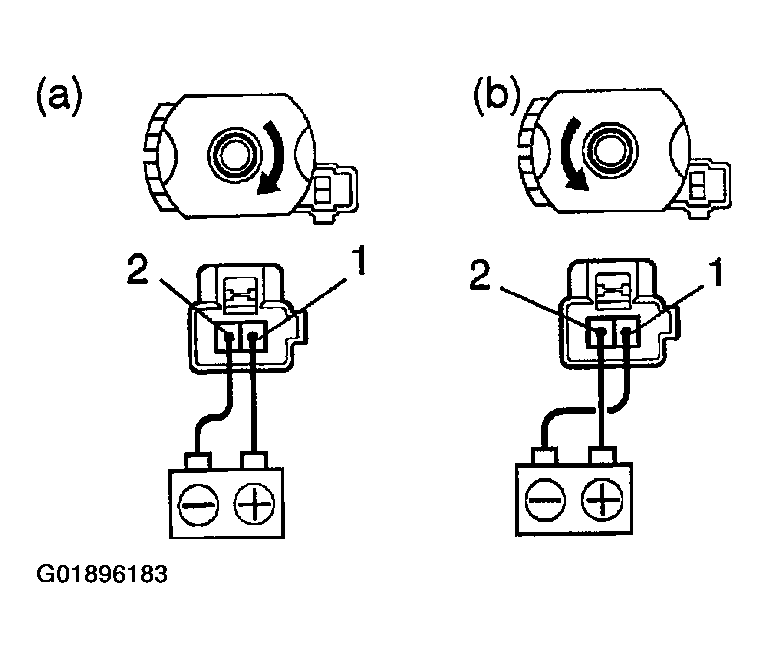 1. Connect the positive (+) lead from the battery to terminal 1 and the negative (-) lead to terminal 2 Check that the motor turns clockwise.