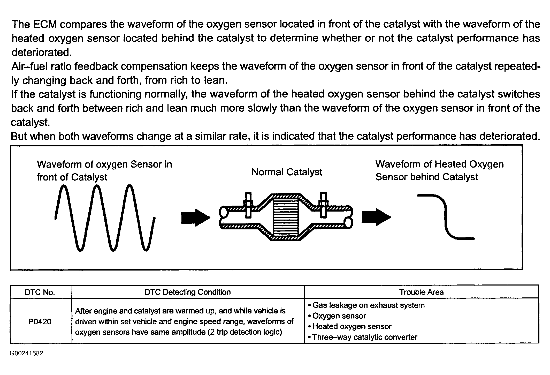 DTC P0420: Catalyst System Efficiency Below Threshold (Bank No. 1)