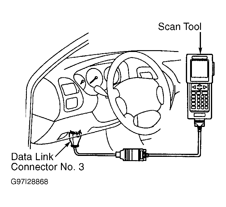 - Prepare OBD II scan tool (complying with SAE J1978) or hand-held tester. For operating instructions, see OBD II scan tool's instruction book. Connect OBD II scan tool or hand-held tester to DLC3. See Figure. If scan tool displays UNABLE TO CONNECT TO VEHICLE, check DLC3. See DATA LINK CONNECTOR NO. 3 INSPECTION under SCAN TOOL PROBLEMS. If scan tool does not display UNABLE TO CONNECT TO VEHICLE, go to next step.