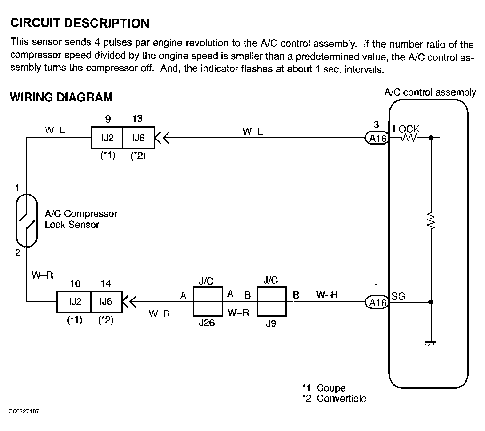 Fig 1: A/C Compressor Lock Sensor Circuit Description & Diagram (Camry Solara With Manual A/C)