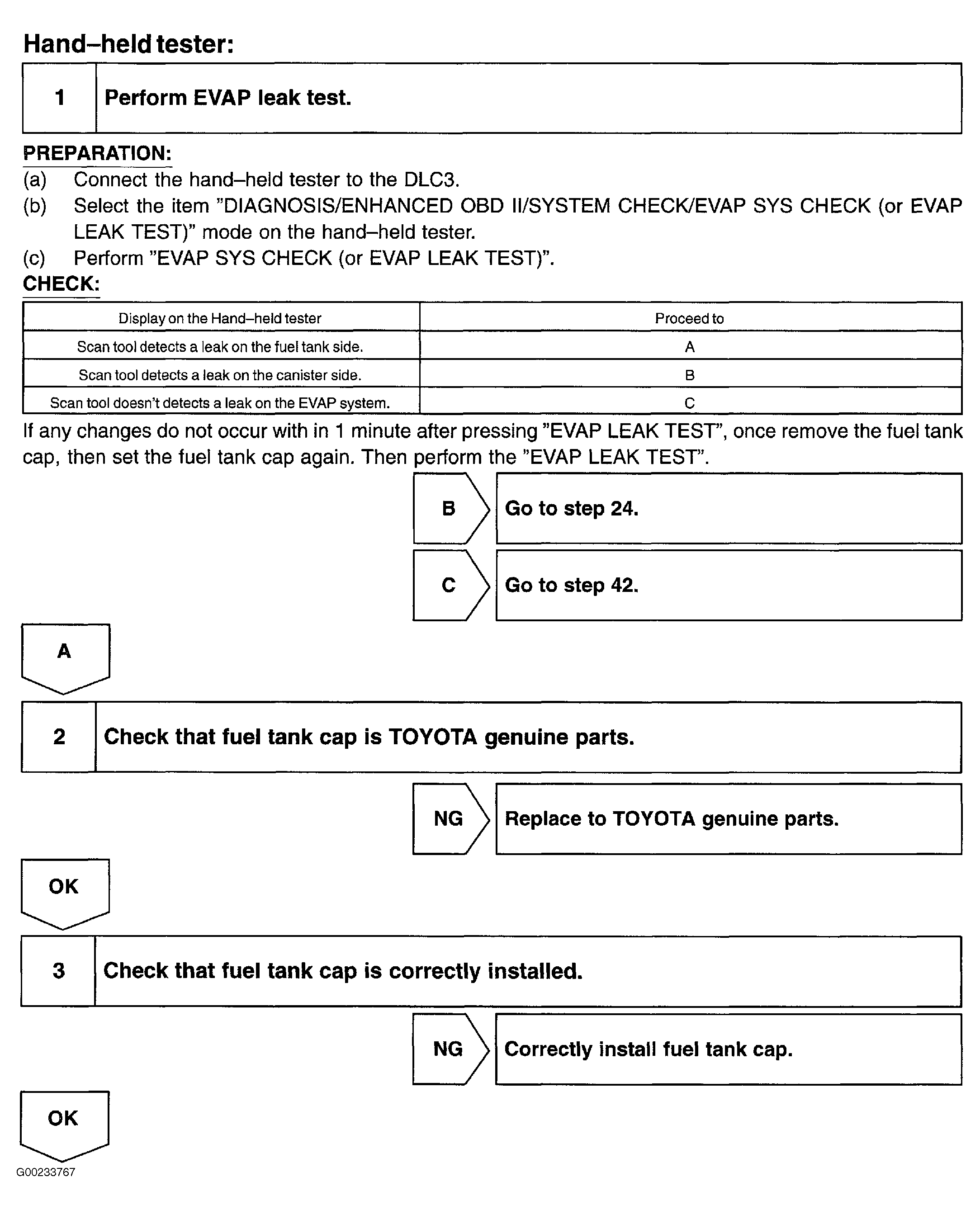 Fig 9: DTCs P0441 & P0446 Diagnostic Procedure Using Toyota Hand-Held Tester (Steps 23-24)
